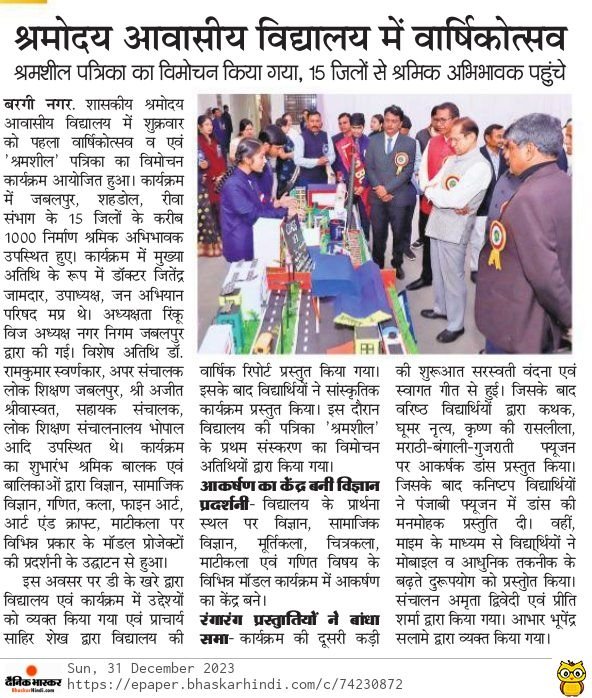 मध्यप्रदेश भवन एवं अन्य संनिर्माण कर्मकार कल्याण मण्डल एवं स्कूल शिक्षा विभाग के मध्य M.O.U. के माध्यम से संचालित